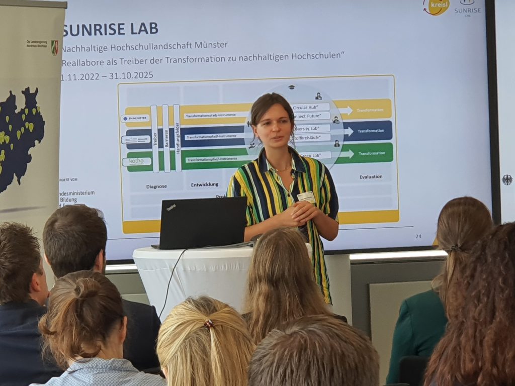 Beim Netzwerktreffen präsentierten wir unser Vorhaben, nachhaltige Praktiken – etwa im Sinne der Circular Economy – an Hochschulen und in realen Umgebungen zu verankern. Dabei zeigten wir auf, welchen Herausforderungen wir in der Praxis begegnen – etwa bei der Einbindung von Stakeholdern, in regulatorischen Fragen oder bei der Verknüpfung digitaler und analoger Prozesse – und welche Lösungsansätze wir bereits erproben.
